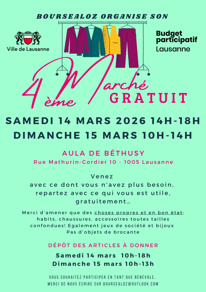 Nous sommes très heureux et fiers d’annoncer notre participation à la 4ème édition du Marché Gratuit de Lausanne, un événement unique qui célèbre la solidarité, le partage et l’économie circulaire.